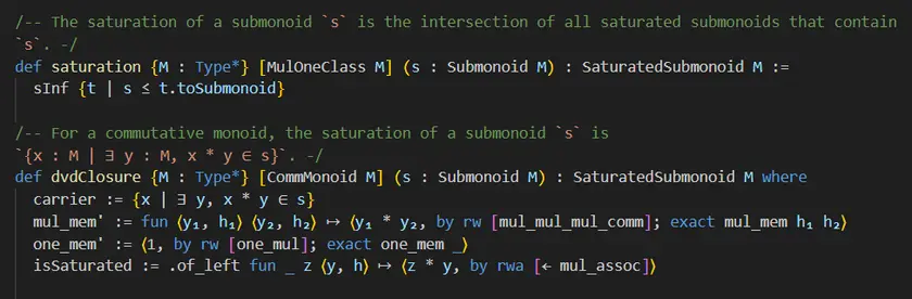 I would like to define the saturation of a submonoid, I think it would be useful for localisation stuff