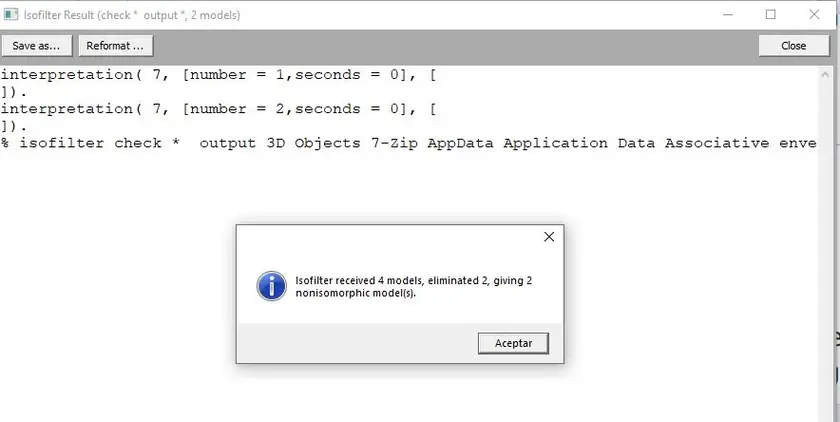 As we already knew, if we add an extra space at the end of the output box, then we solve the problem of isofilter incorrectly removing some models from the list (although counting their supposed number correctly in the notification).