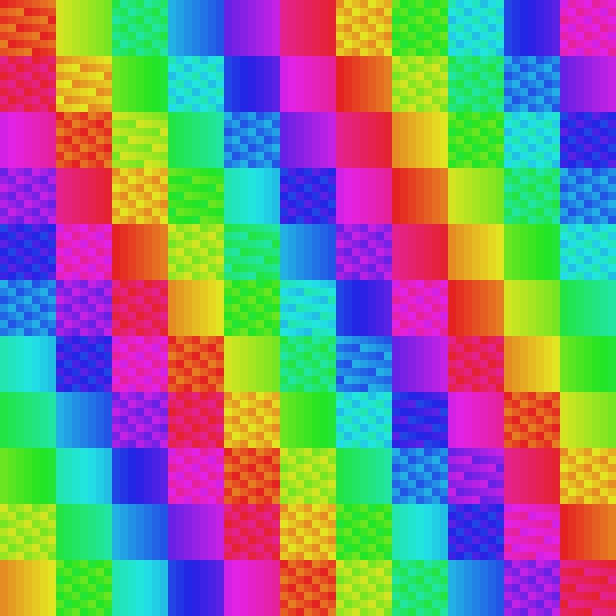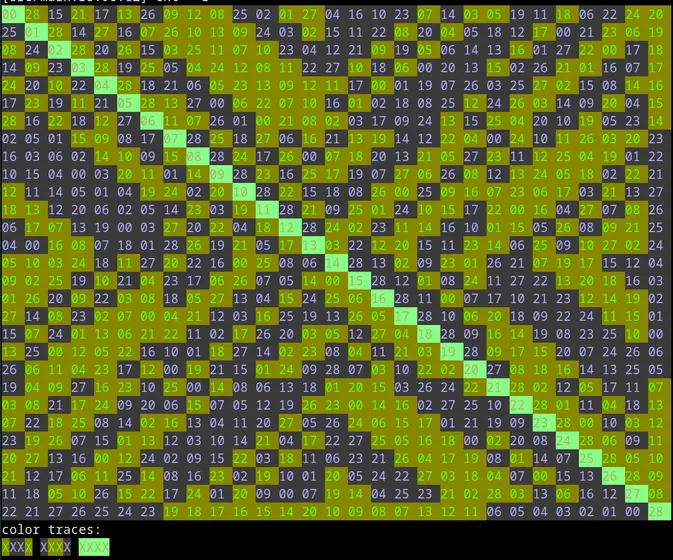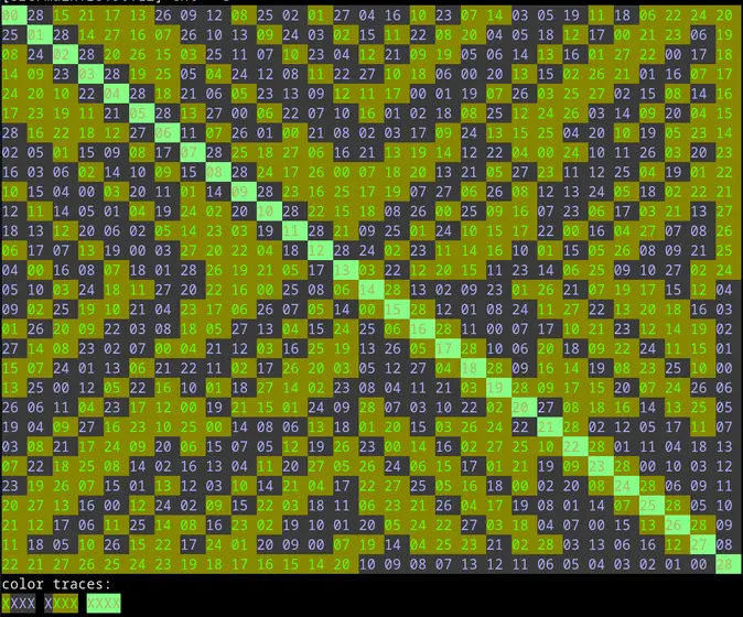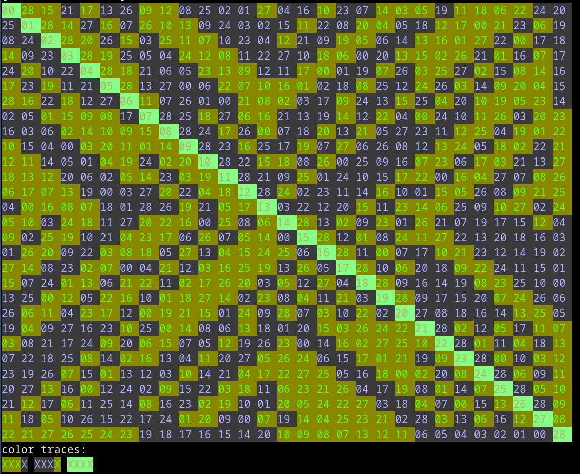 For the visualization, I'm surprised that so much of the structure is visible. Are you just assigning hue based on the value in order from 0 to n-1, or are you choosing the color assignment in some automated way that somehow picks up the structure?