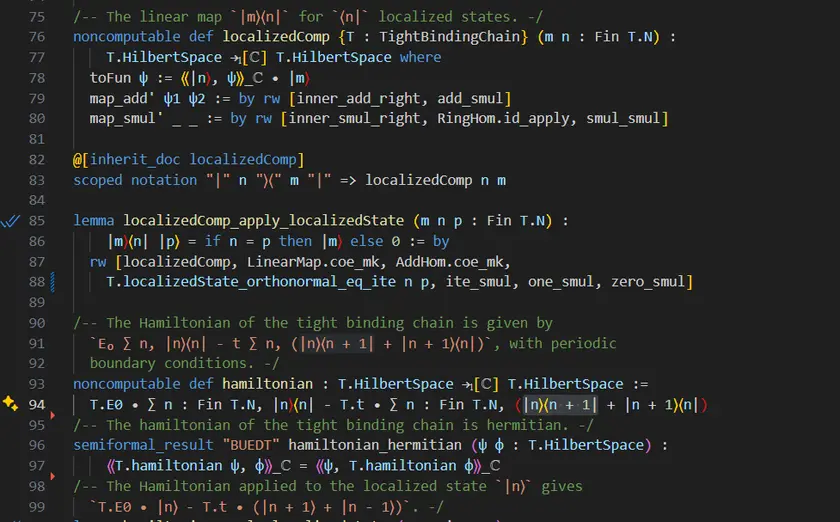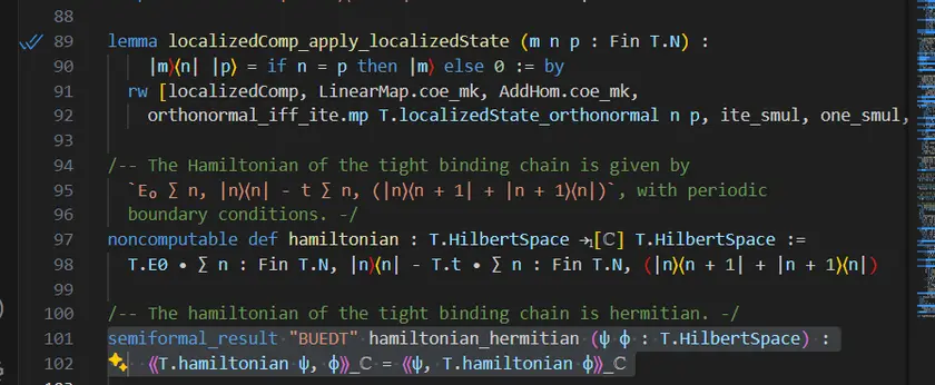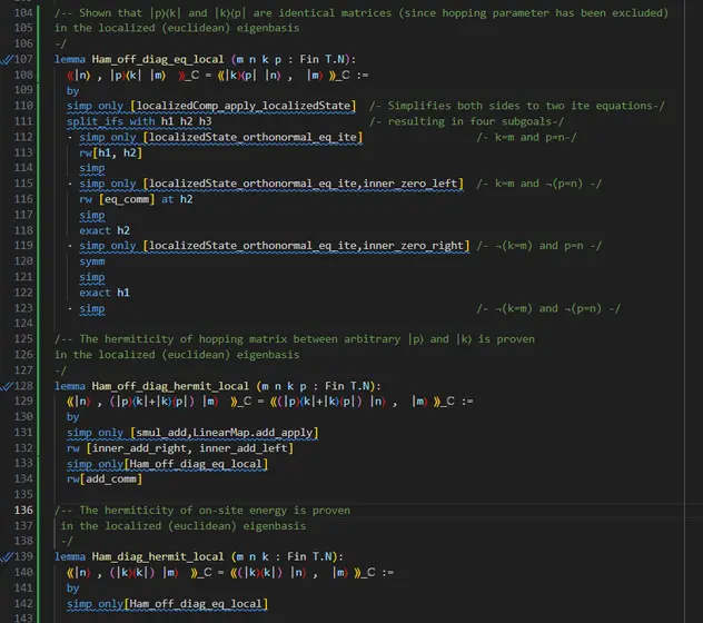 In the tight-binding lean code, The hermiticity semiformal result is currently stated on line 101 as :