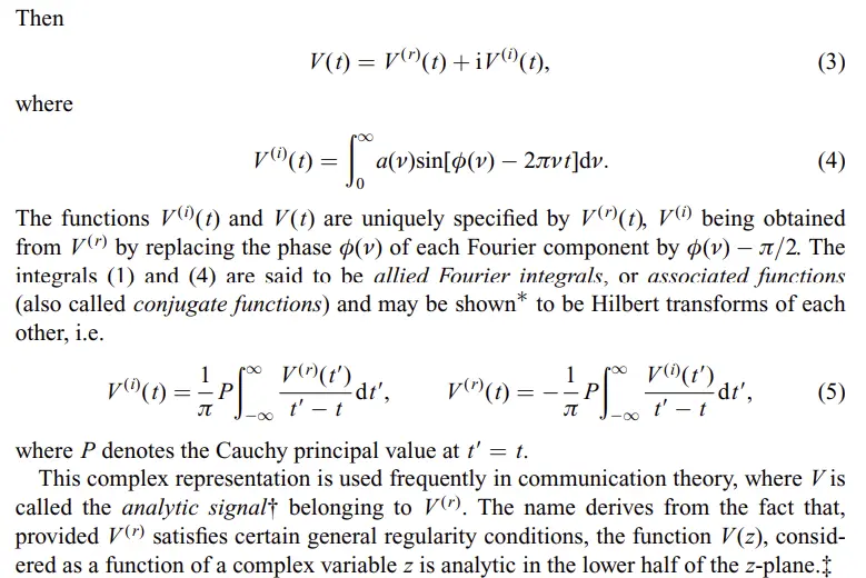 Basically given a signal s(t) you construct a complexification s(t) + i * H(s(t)) where H is the Hilbert transform.