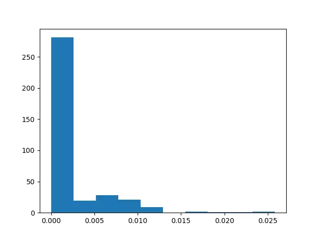 As expected, most files are basically zero, but there is a separation of some outliers above .015. These are those outliers: