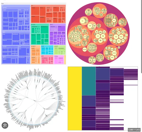 I have an alternate scheme in mind, using python generate a hierarchical tree data structure from file and folder hierarchies in the repo. Then all hierarchical data visualizations can be easily applied as shown below