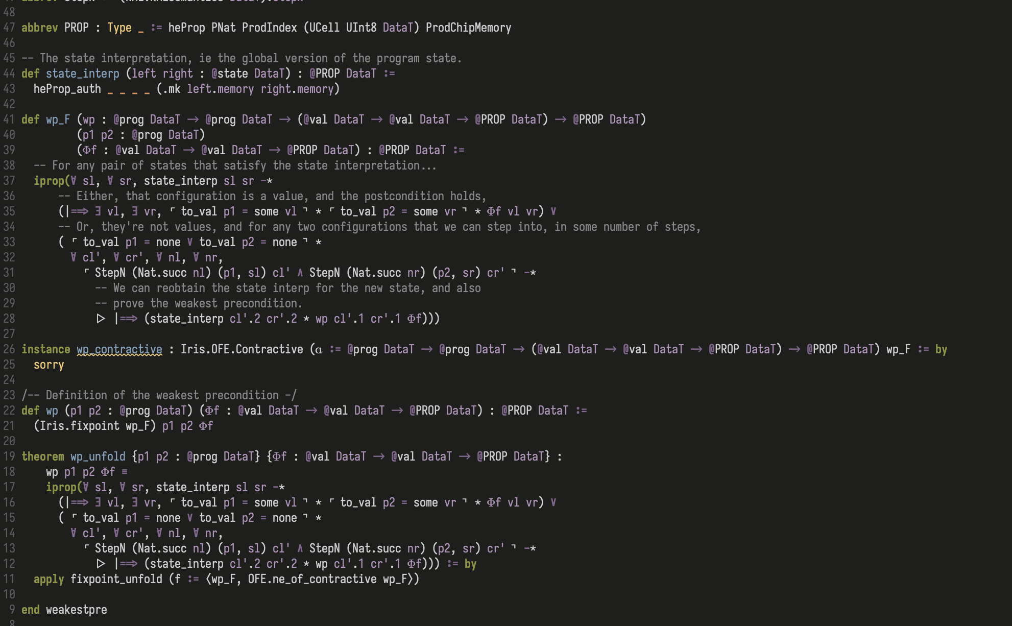 Thanks again for everyone who is helping with the project! To end here is a cool picture that is downstream of almost everyone who has contributed: the definition for the points-to connective using Iris ghost state: