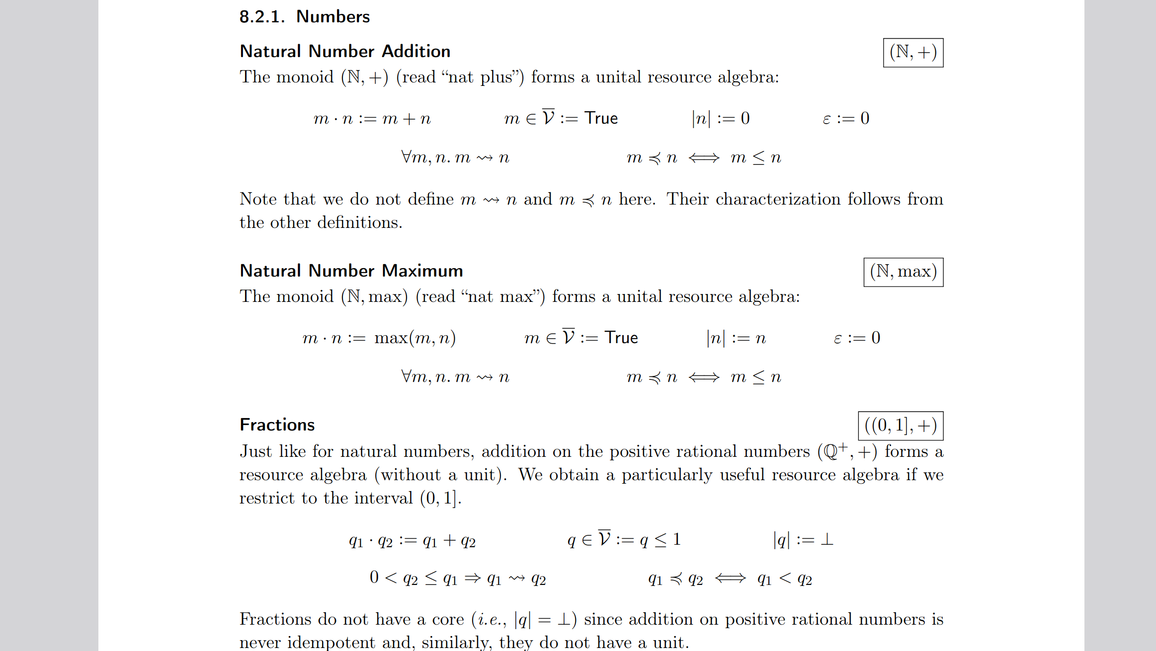Well that's not strictly true, you could want a finitely splittable fractional resource for example (Nat+ with addition and One.one := n). But your overall point that program logics abstract over the concrete fractions is true.