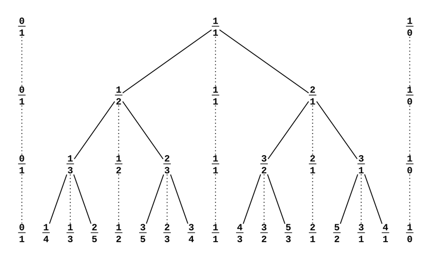 To be upfront, I can see the simplicity of just using rational numbers here. The more I think about this tree system, the more complicated it seems.