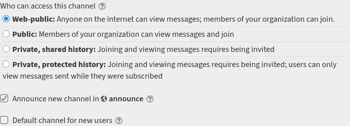 Here I would say the "Yes" options would default to a web-public channel; any other options should be under "Other".