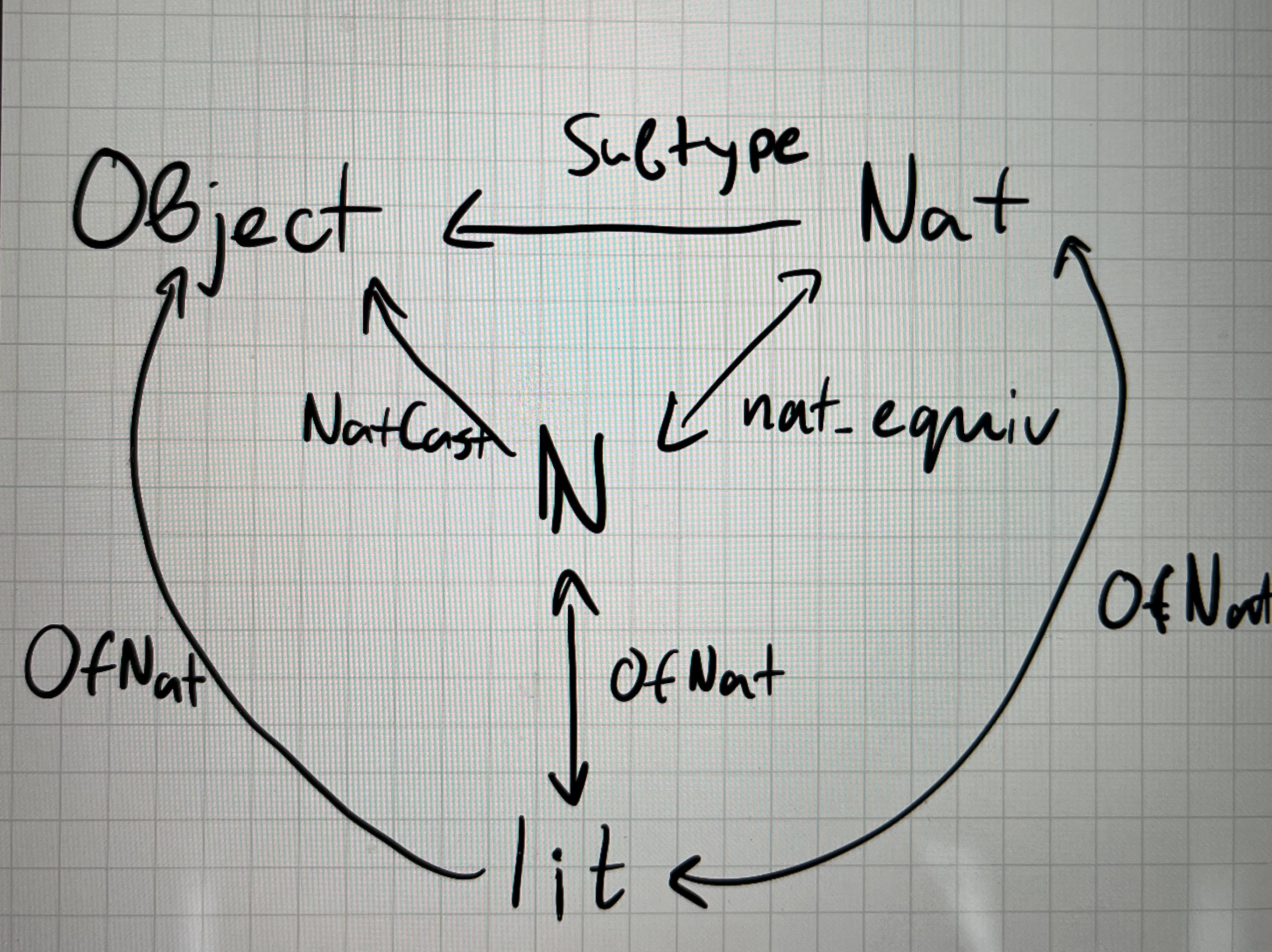I think a lot has to do with literals adding an extra wrinkle into the Object, Nat, \N` picture. I think the mental model is something like this