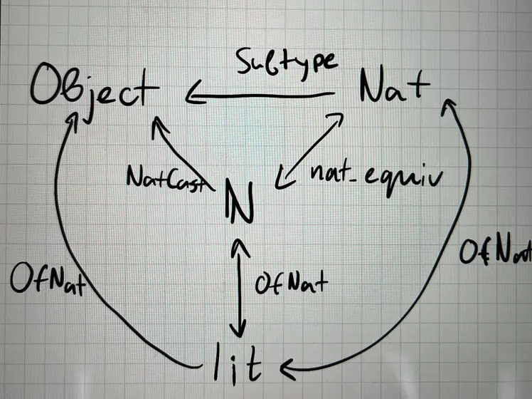 I guess what I am wondering (sorry, I don't have the right language yet to make a lof ot his precise) is that it seems to me that literal have a direct mapping to some type X (in this case Object and Nat) though OfNat, but \N also has an injective map into those, and literals obviously can be turned into \N (and Lean does this someone preferentially? according to above?). So now we have two paths from lit to custom object that we 1) have to prove they commute 2) rewrite when necessary.