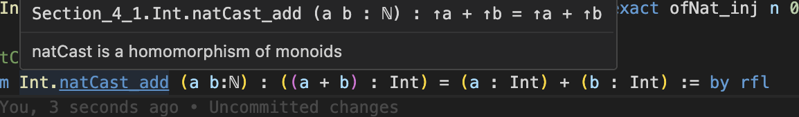 So the next step is to apply this, but it doesn't apply because there is addition in the way. So I tried to define my own theorem that the cast is a homomorphism between Nat and Int as monoids, but Lean keeps distributing it over addition so I can't even get to see ↑(u + t) to apply cast_eq_0_iff_eq_0