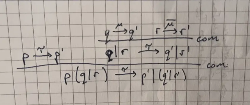 I’ve been looking at some of the proof_wanteds in CCS.BehaviouralTheory as grind practice — bisimilarity_choice_nil went through nicely but I think bisimilarity_par_assoc is not true in the current formalisation. The problem is transitions like: image_6348A634-D21B-4C39-B8CA-98CA3DA5C836_1757690603.heic