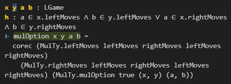 def mk {a : Type u} (l : a -> a -> Prop) (r : a -> a -> Prop) (x : a) : LGame.{u} :=